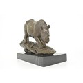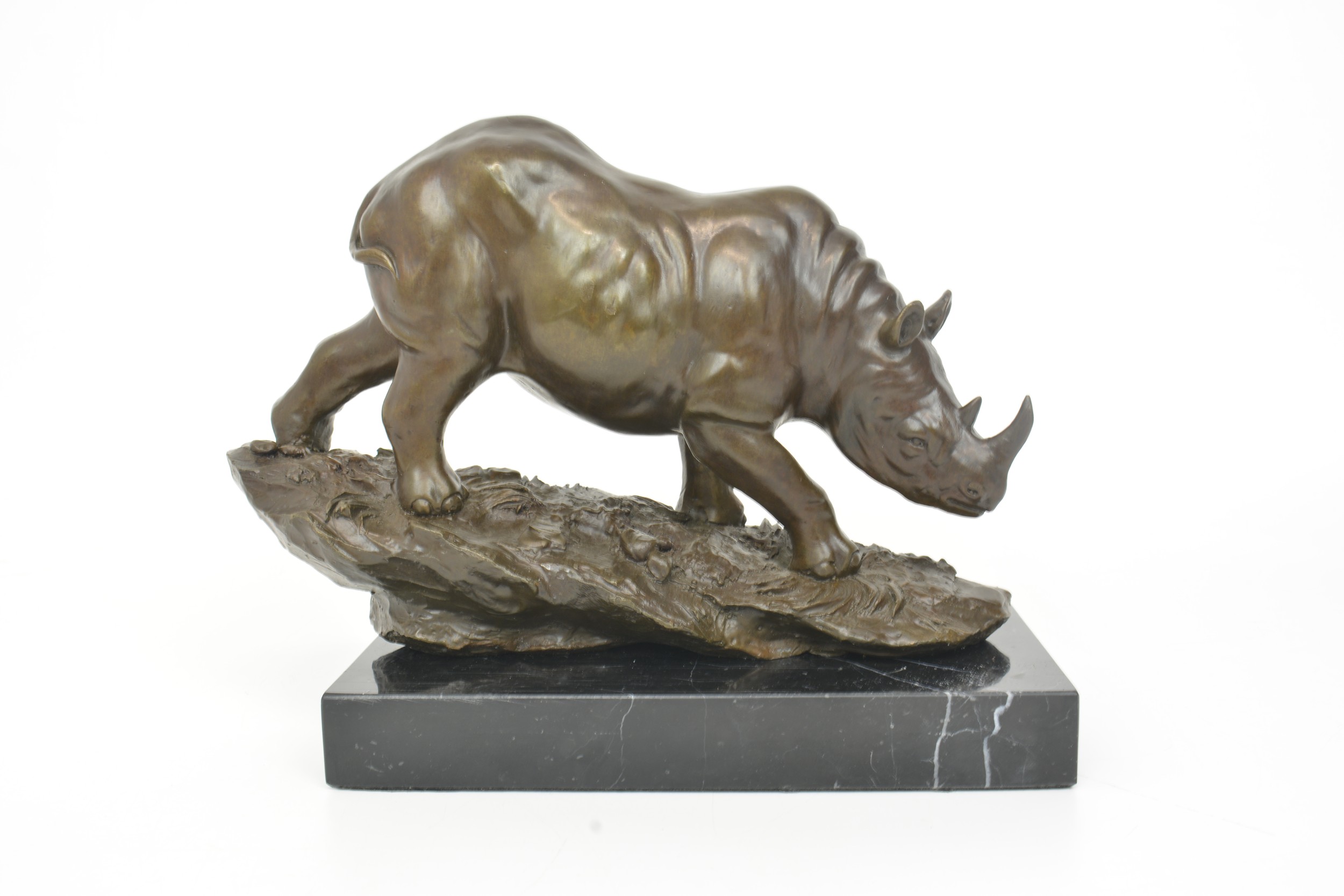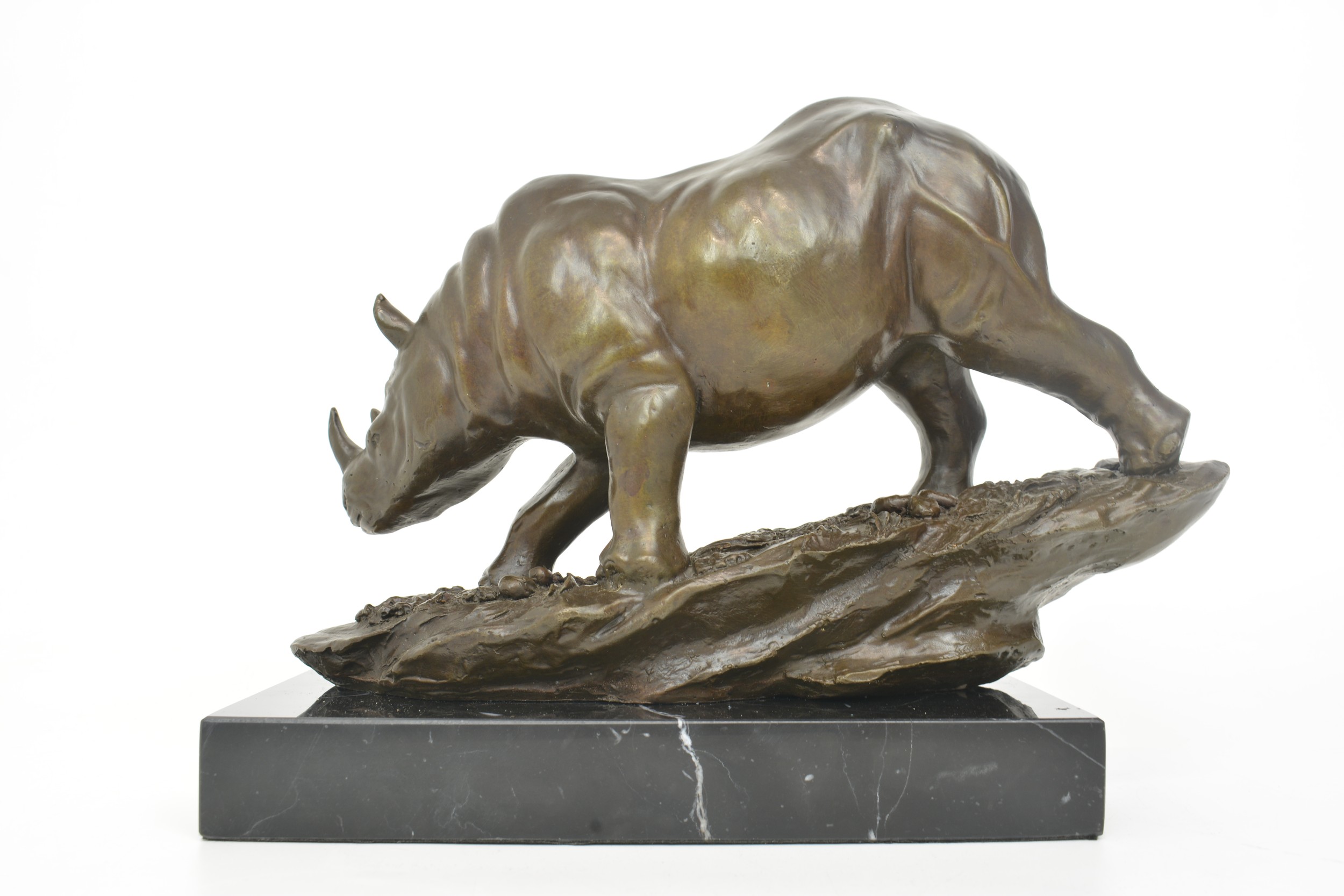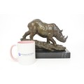 A bronze casting of a Rhino with well sculpted detail on marble base. H: 22cm W: 28cm D: 12cm