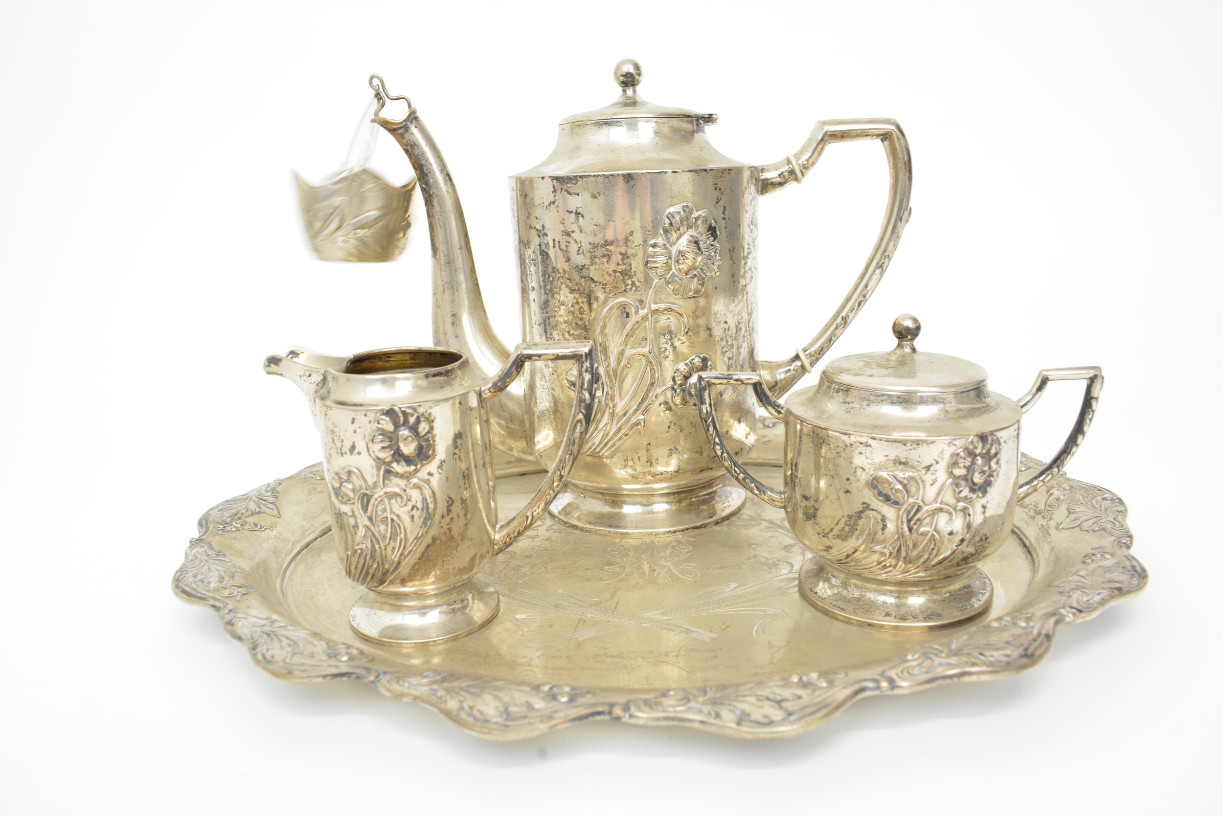 Antique silver tea set with gold gilt interior
