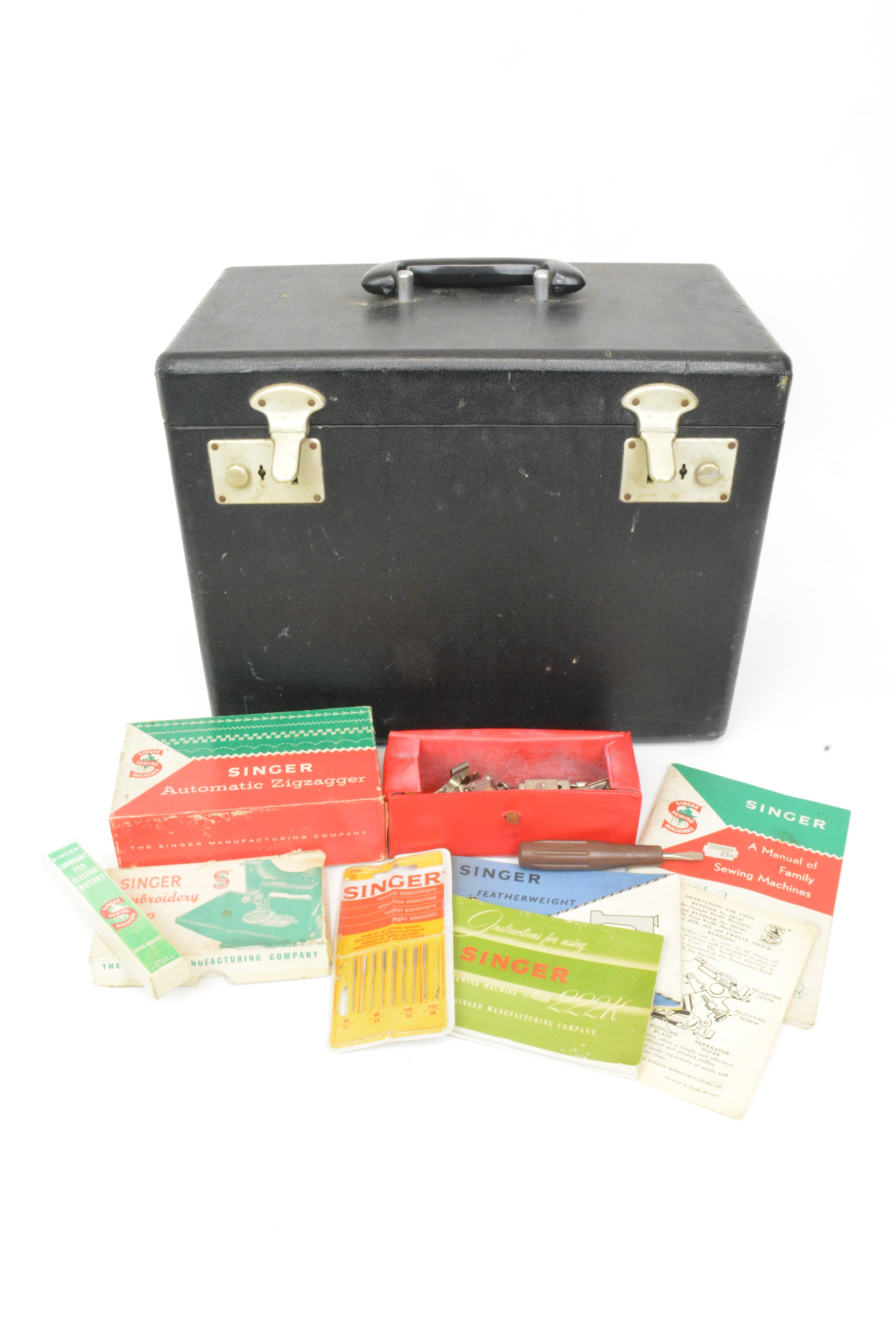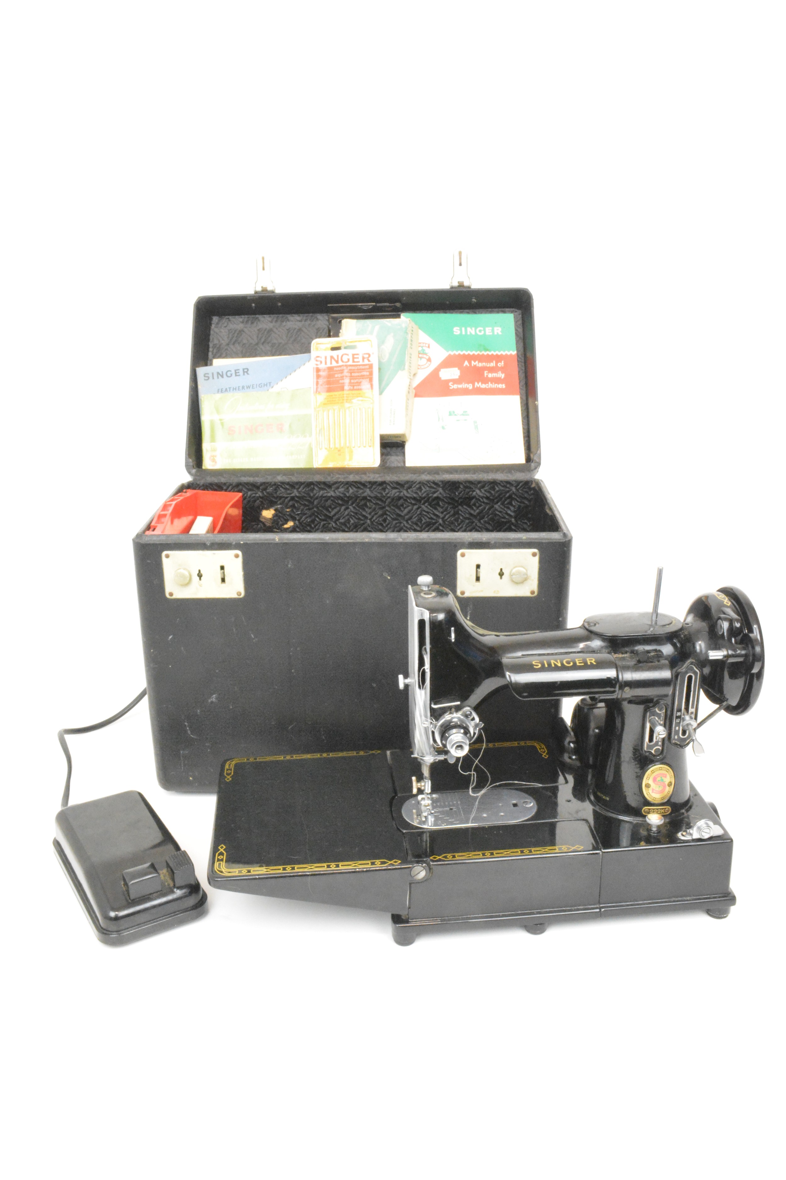 Singer Featherweight model 22k, in original case, with key, instructions and accessories, in working order.