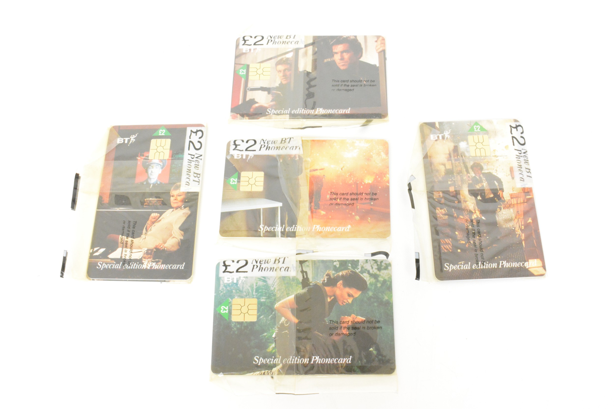 Assortment of phone cards, including special edition BT James Bond unopened phonecards