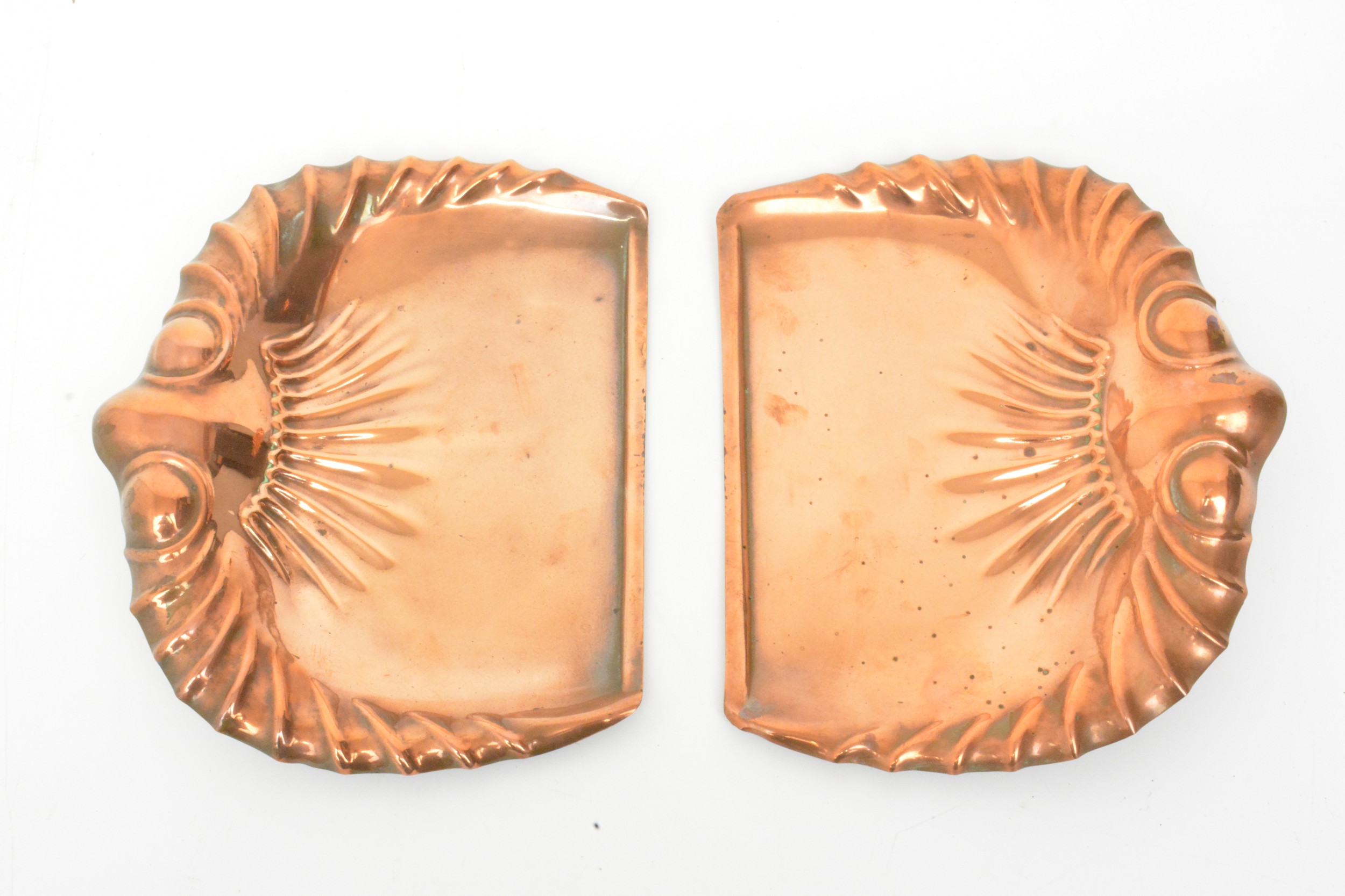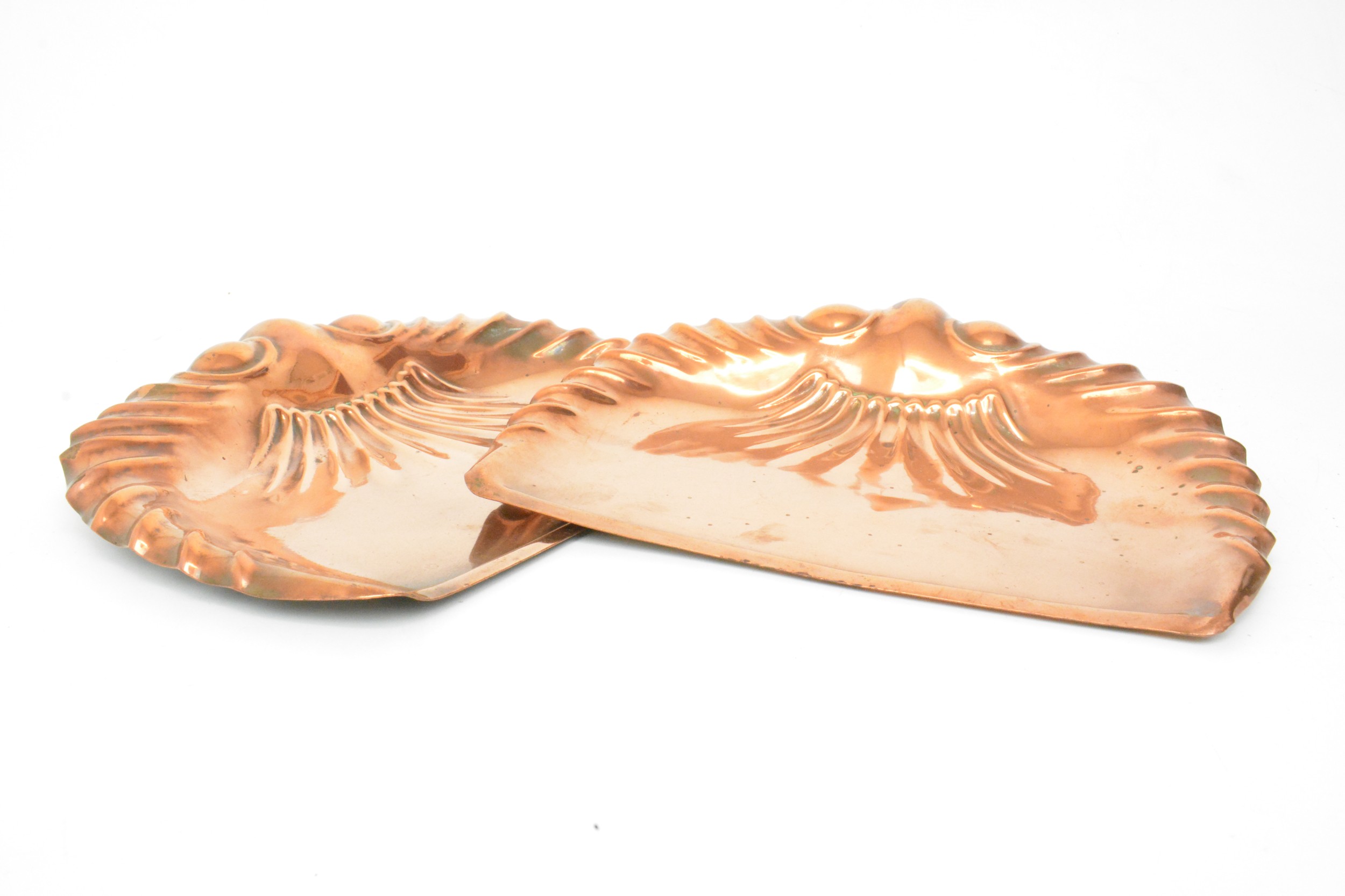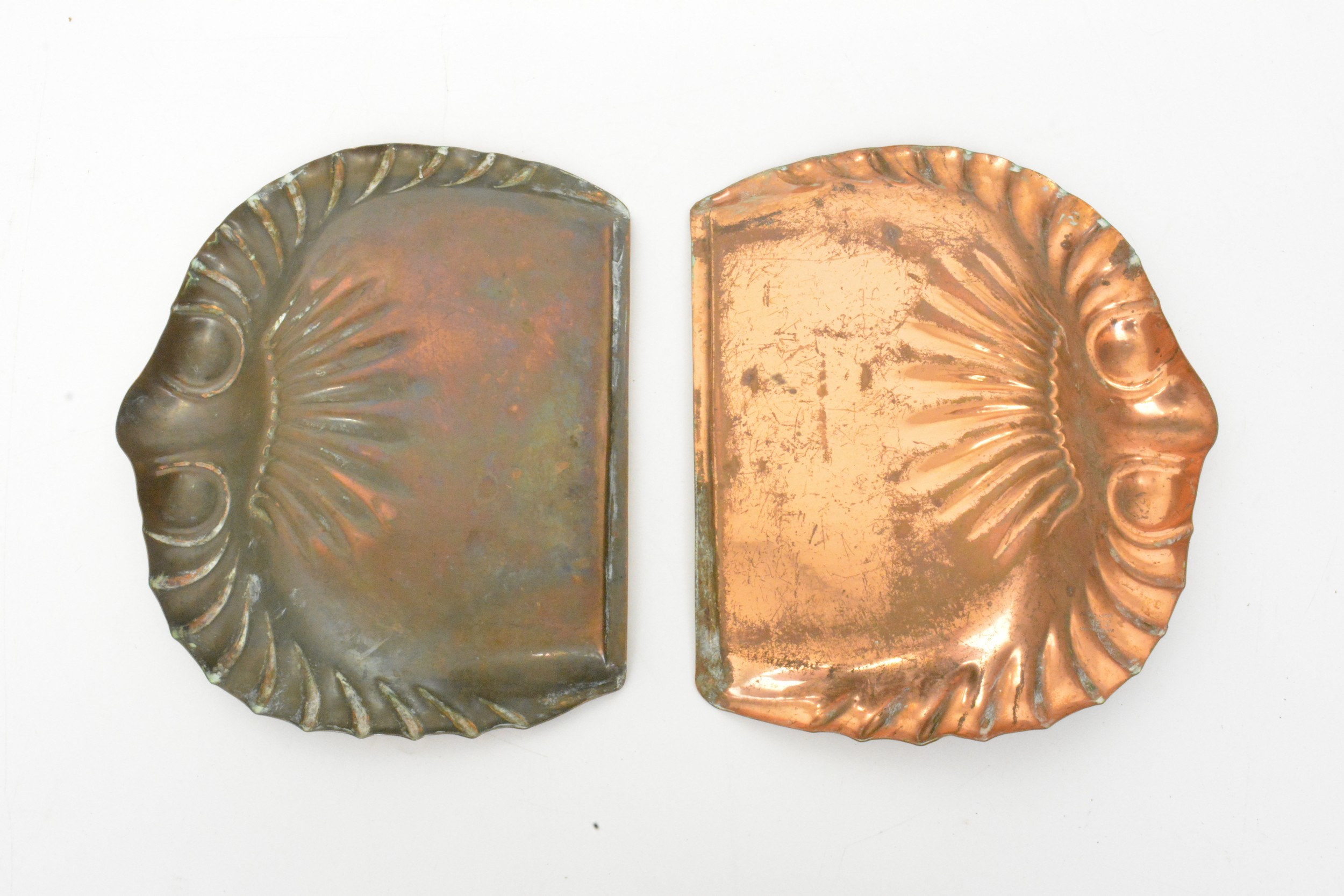 crumb trays, coppered finish, marks J S & S (x2).